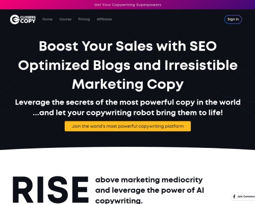 ClosersCopy是一款人工智能写作软件,不同于其他AI写作软件,该工具并未使用GPT-3模型。ClosersCopy网站上写到,其他的模型没有接受过专门撰写营销文案的训练,而他们的模型有这方面的专门训练,使用其人工智能可以创作出真正的营销文案,用于销售产品和服务。
